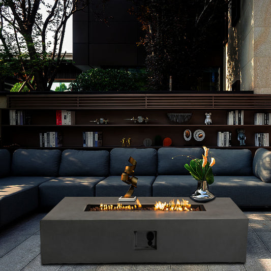 Large Rectangular Concrete Gas Fire Pit Table | 50,000 BTU Outdoor Propane Fire Pit