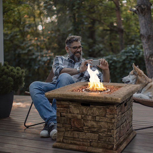 32-Inch Square Stonecast Propane Fire Pit | Outdoor Gas Fire Pit with 50,000 BTU | Weather-Resistant and Stylish