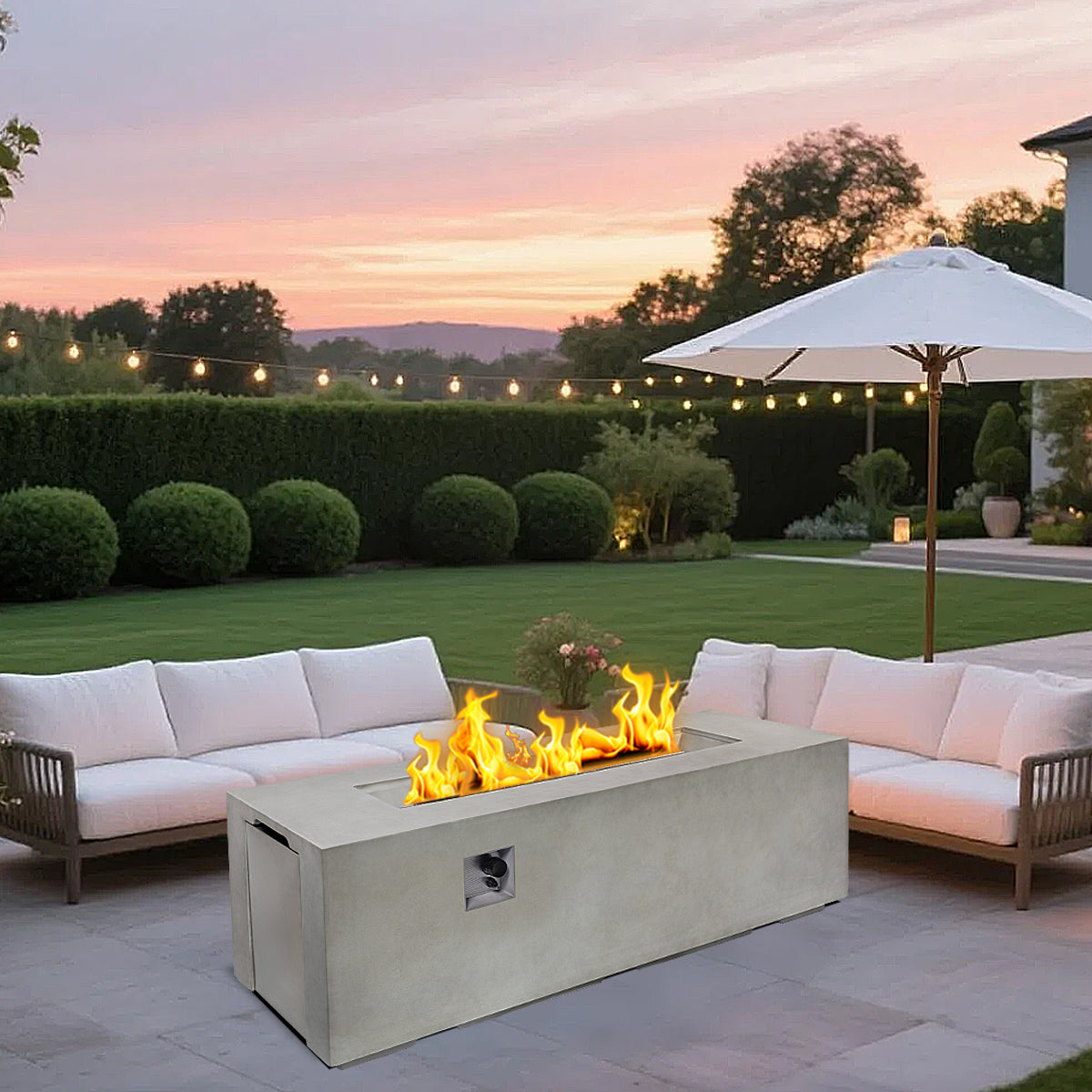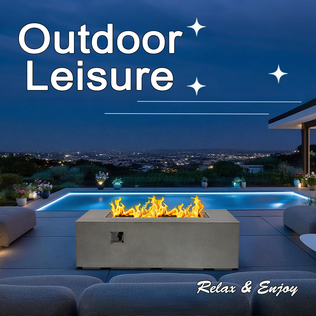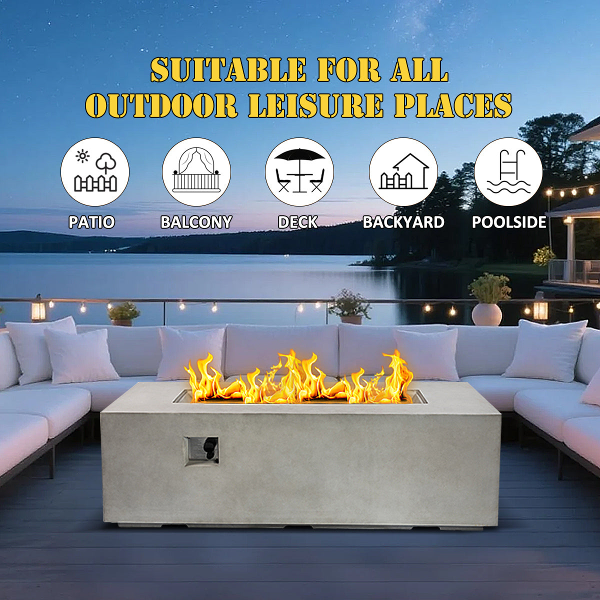 【Large Rectangular Cement Gas Fire Pit】Impress anyone who steps into your outdoor space with our largest concrete fire pit. Grand in size but subtle in its form, this smokeless fire table features a minimalist rectangular shape and perfectly crafted straight edges.