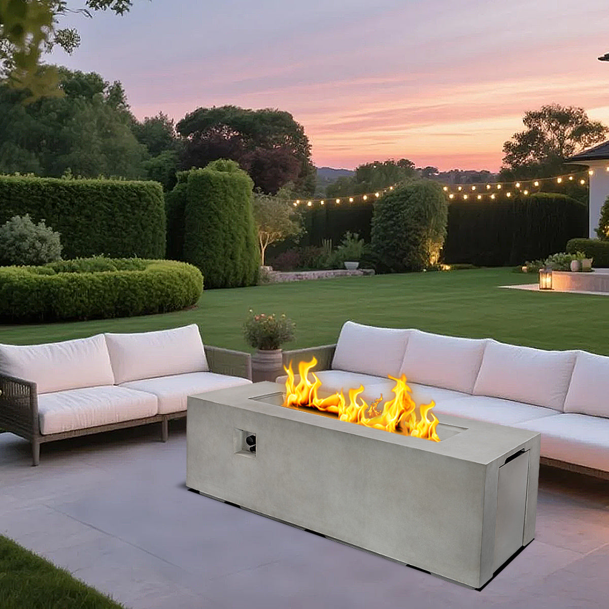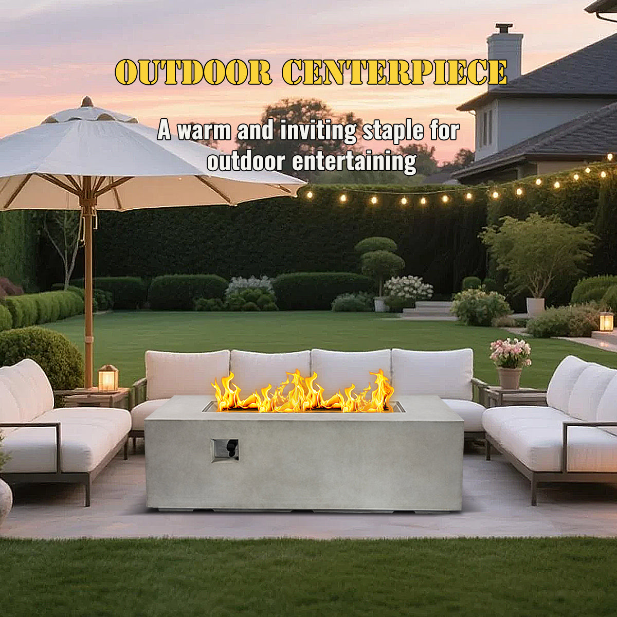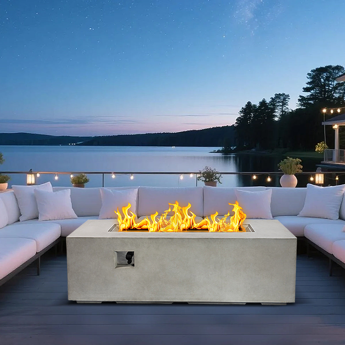 【Large Rectangular Cement Gas Fire Pit】Impress anyone who steps into your outdoor space with our largest concrete fire pit. Grand in size but subtle in its form, this smokeless fire table features a minimalist rectangular shape and perfectly crafted straight edges.