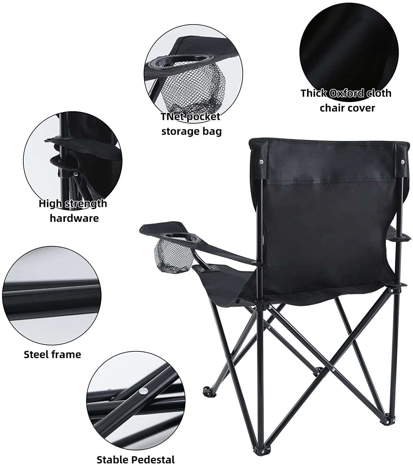 Portable Folding Black Camping Chair, Large