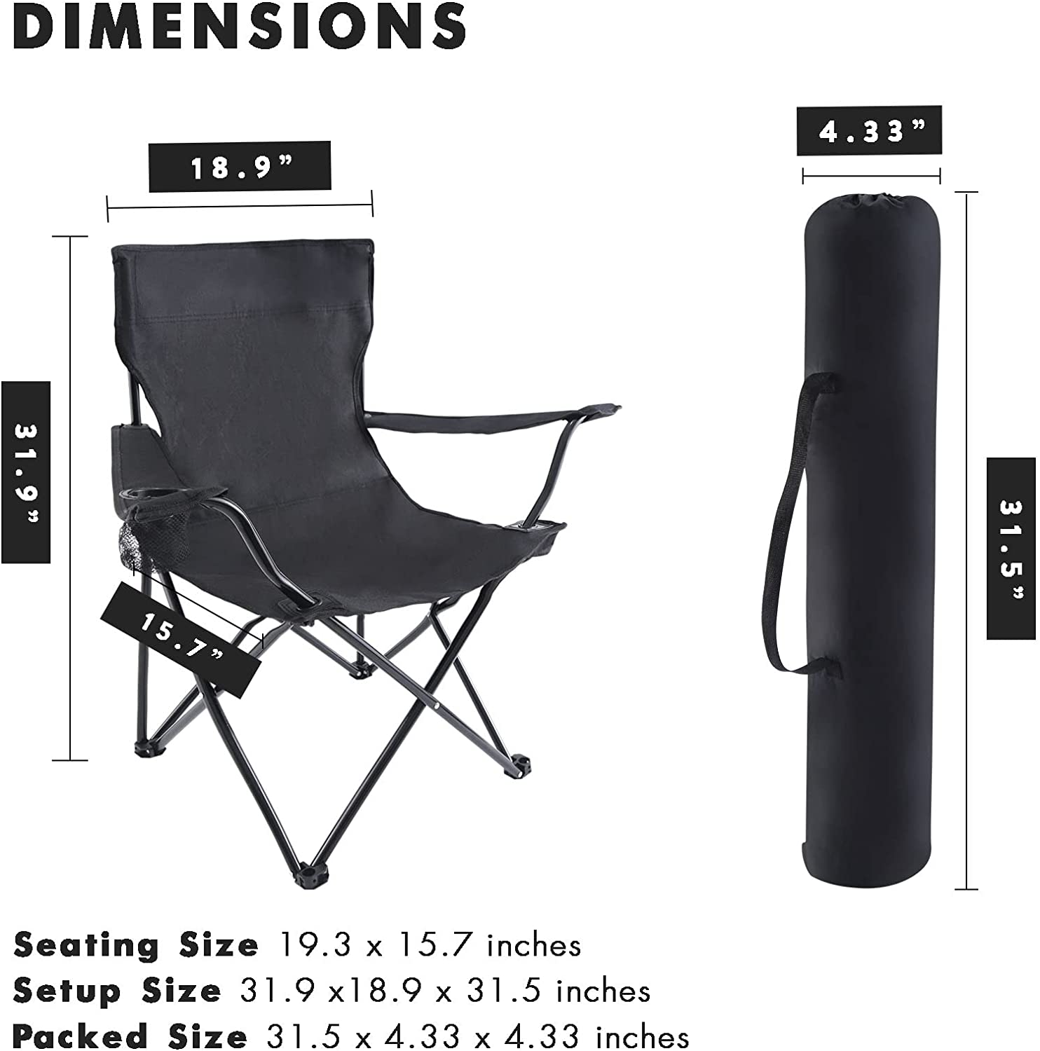 - Quick Setup and Takedown - Compact, foldable design chair comes with a bag features a carrying strap. Hassel-free assembly, just open it then sit; Hassel-free storage, just fold it up into the bag, then take and go.